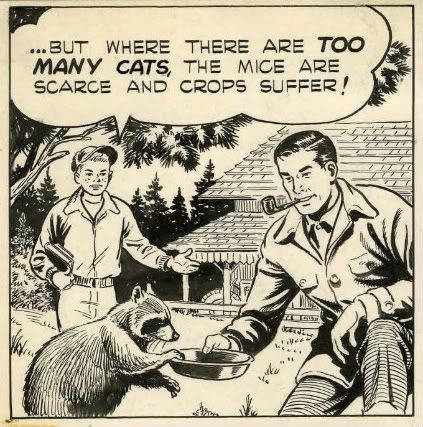 We then write the final draft. At this point the weekly "scenes" are written, and frequently they are changed slightly, depending on both the art and dramatic quality improvement. These are also forwarded to New York for criticism, and are often changed in detail before the drawing is started. Once the weekly scenes are agreed upon, artists then lay out the art, including the balloons, in pencil. This "rough" is then turned over to the letterer who put in the finished copy. After that the drawings are completed in ink. I was born in Lafayette, Georgia in 1902. I studied architecture at Georgia Tech one year, and spent two years studying at the Art Students' League in New York. Mark Trail was started in 1946.